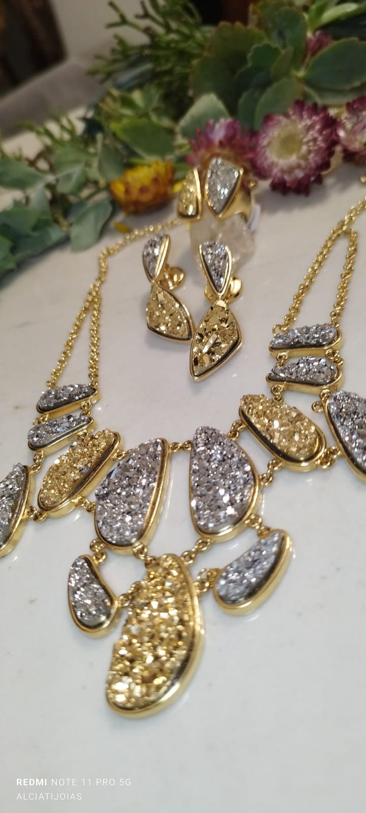 Colares em pedras naturais Drusas multicoloridas.