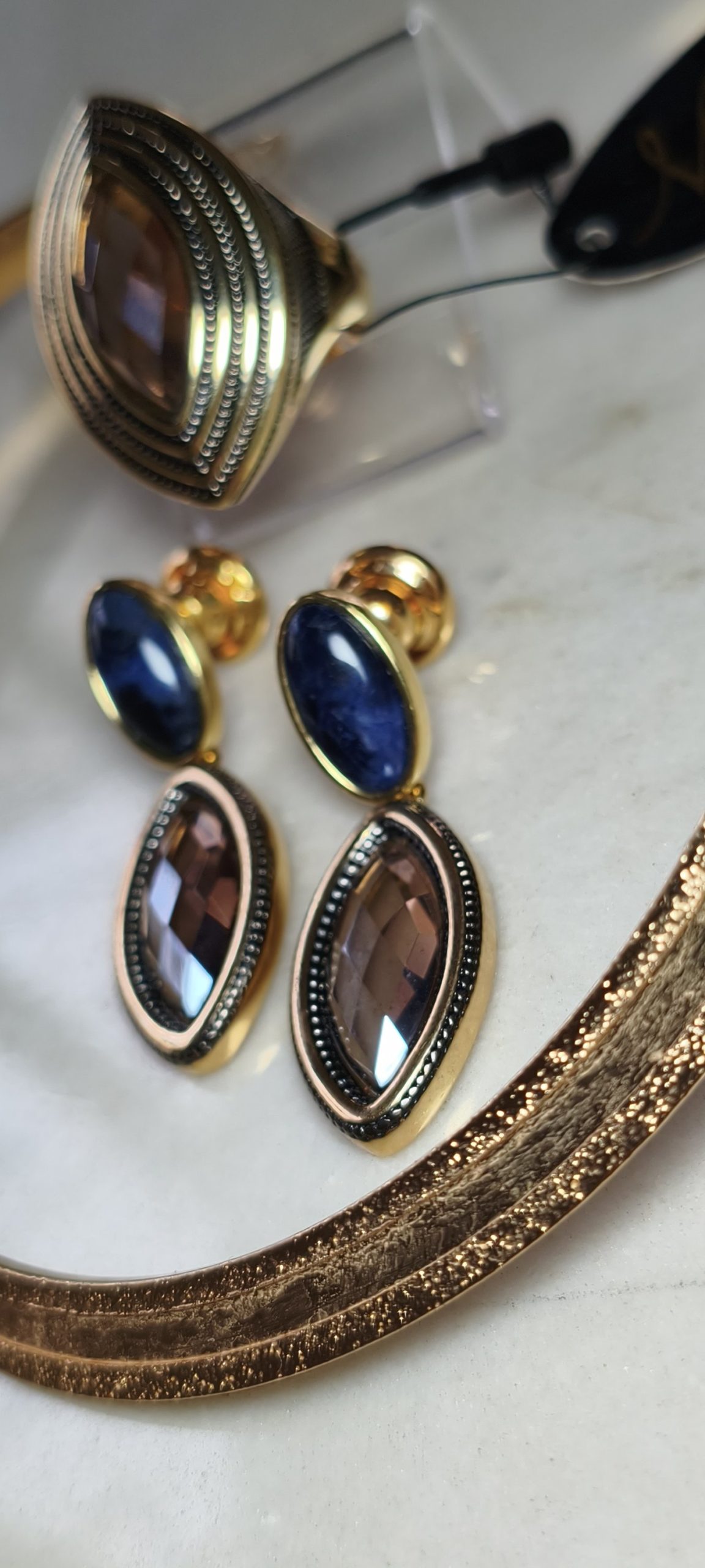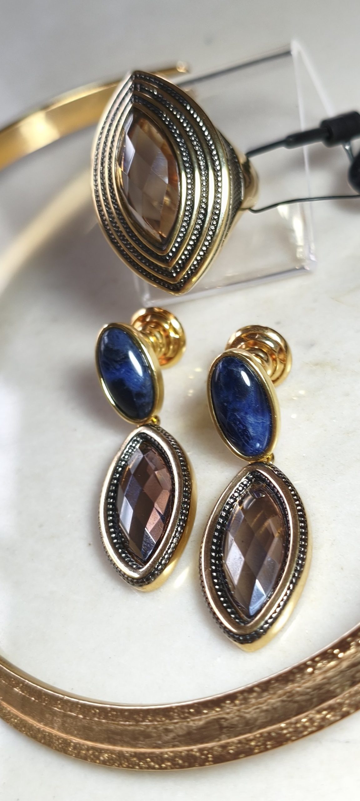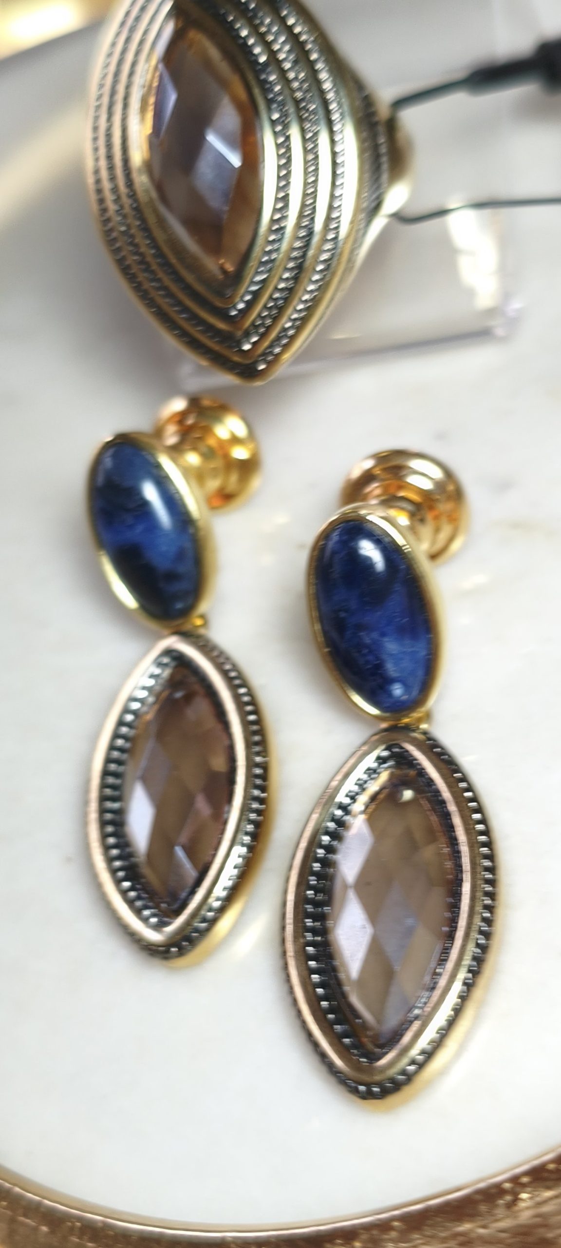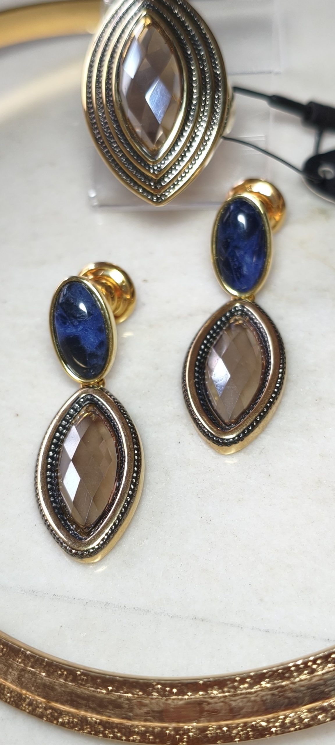 lindo conjunto em cristal Fumê facetado já na base do brinco é uma pedra de soda.