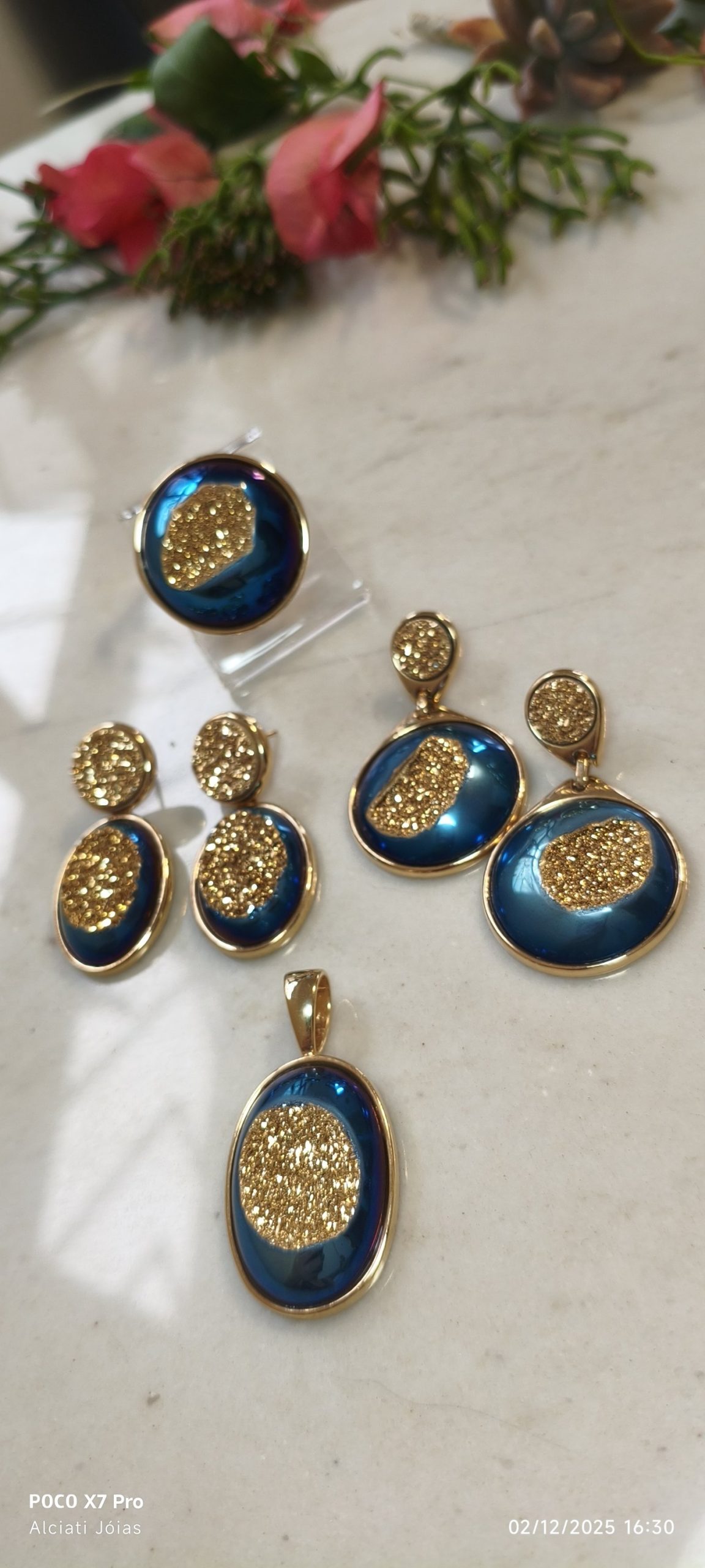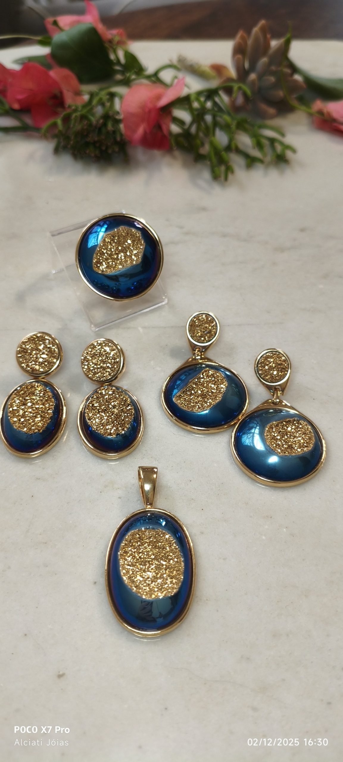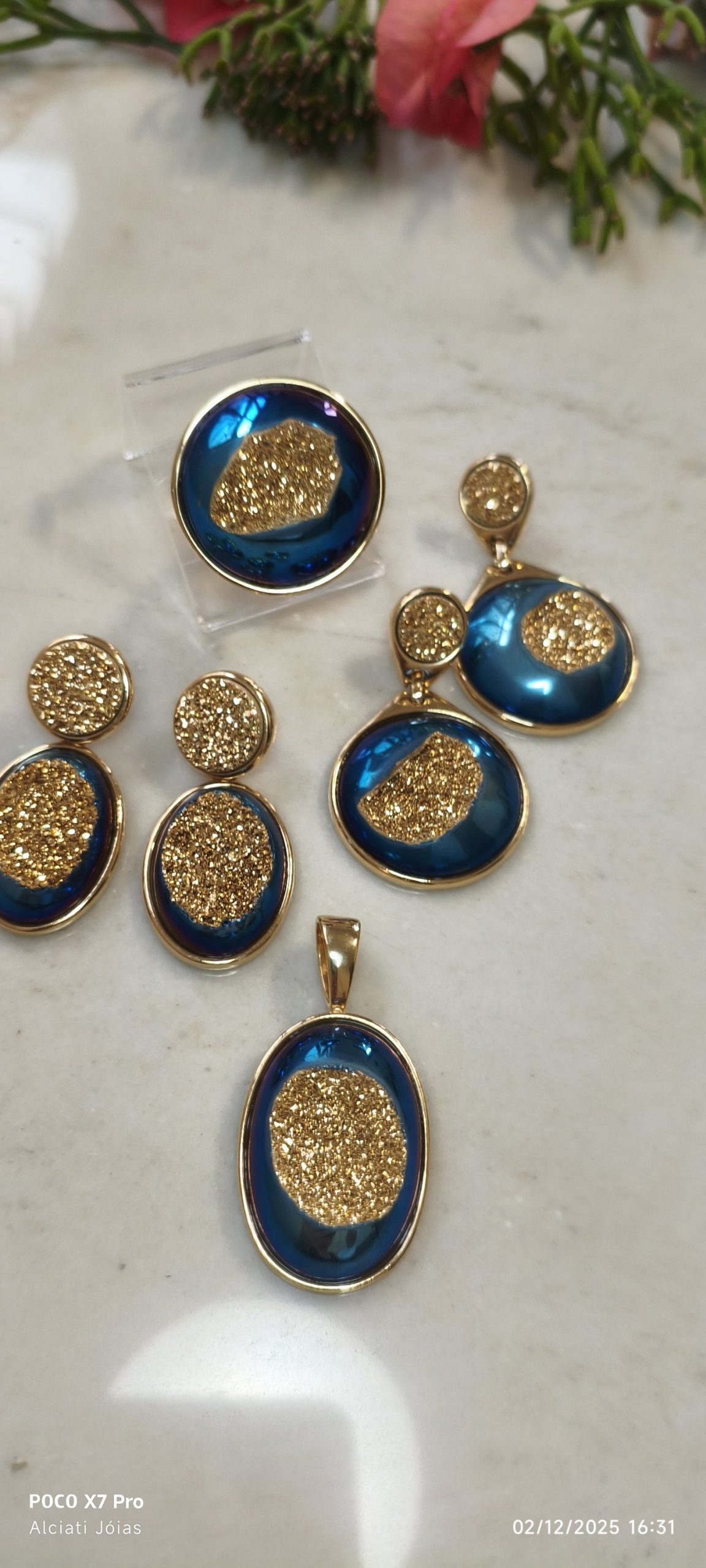 conjunto maravilhoso em Drusa douradas com molduras em titânio