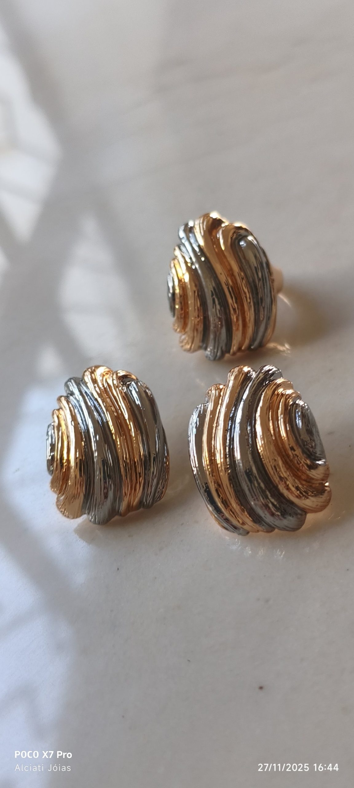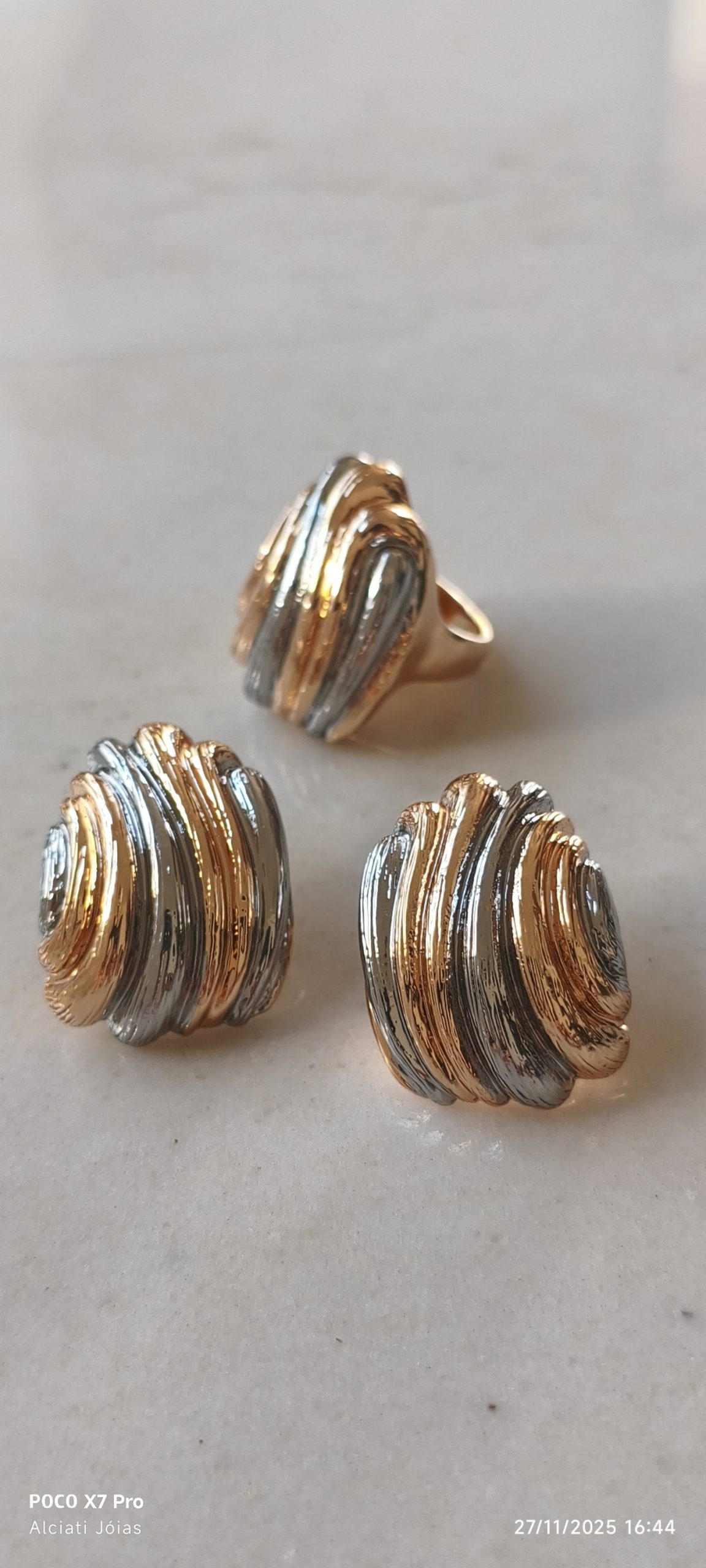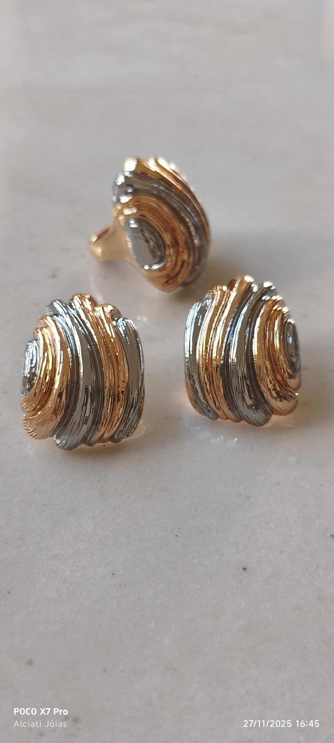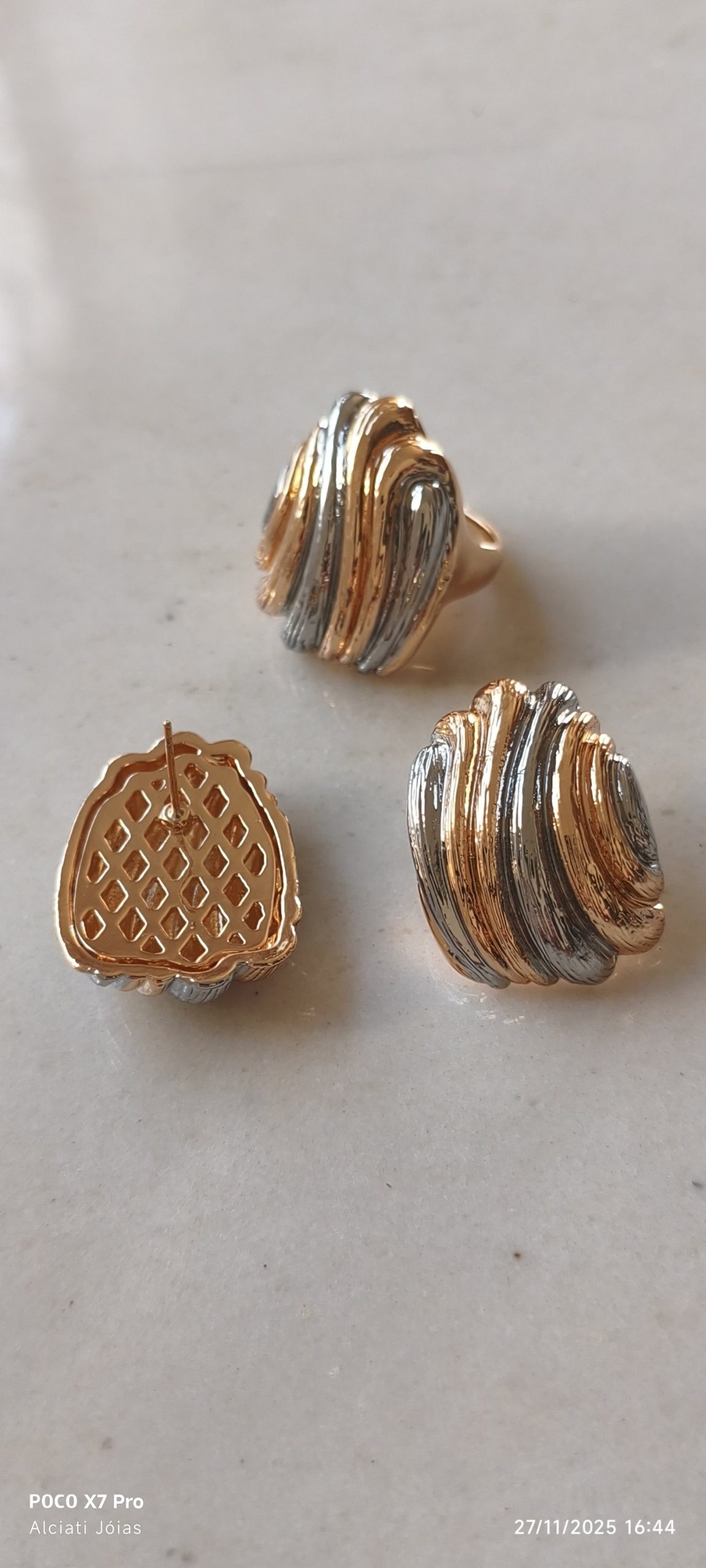 maravilhoso conjunto em anel e brinco no banho ouro 18 e no ródio branco anel aro 15