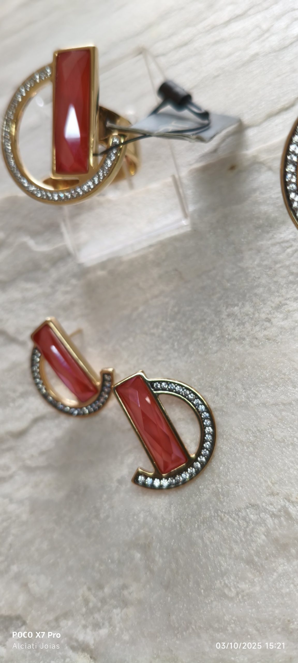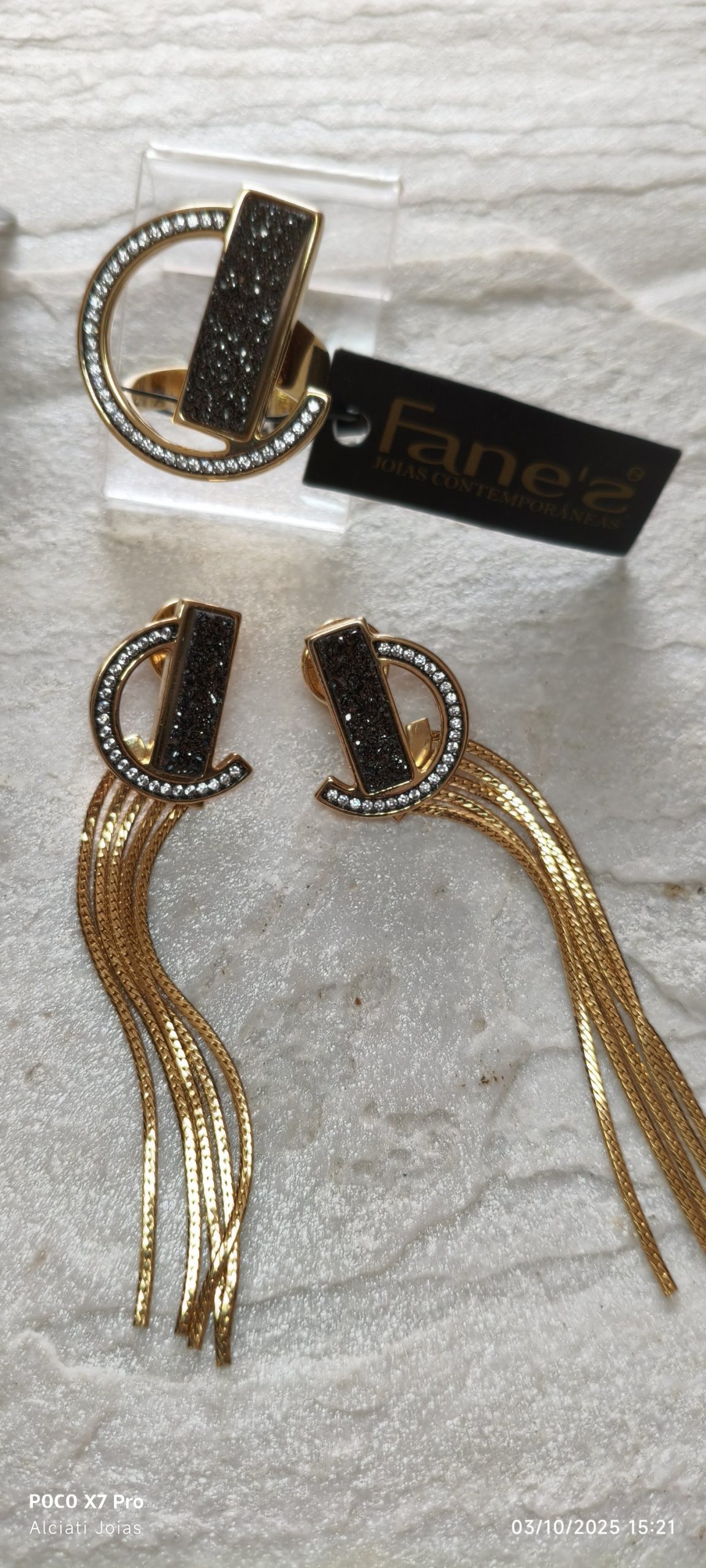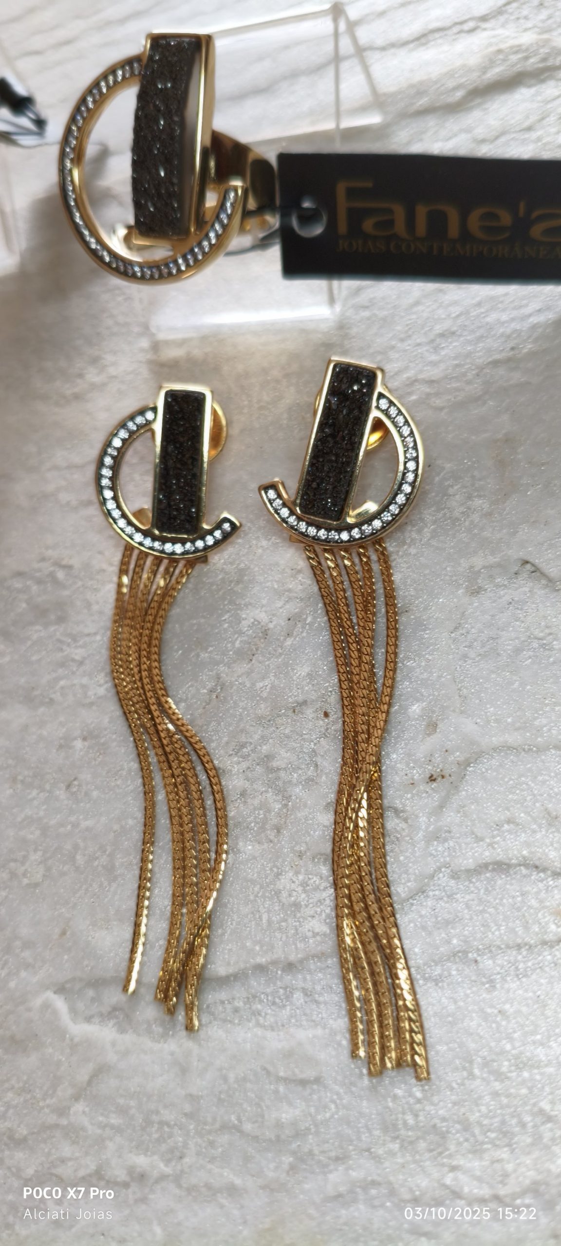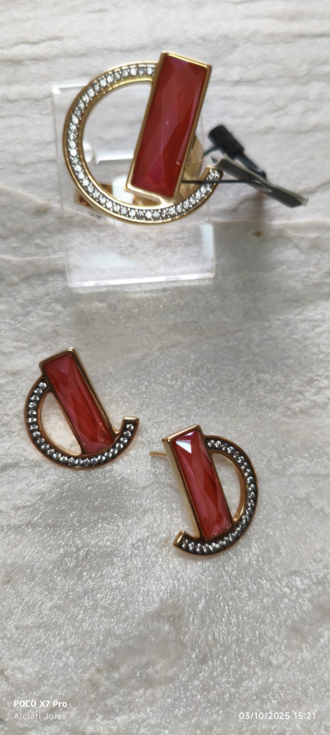 Conjunto em Cristal de Rocha Facetado, com esmaltação na parte inferior.